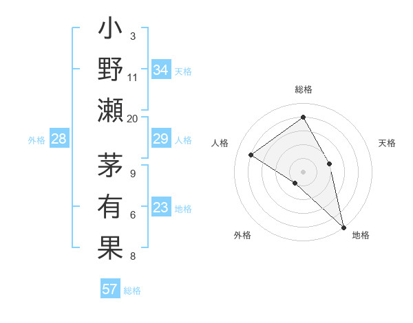 小野瀬 茅有果さんを姓名の画数から五運を鑑定