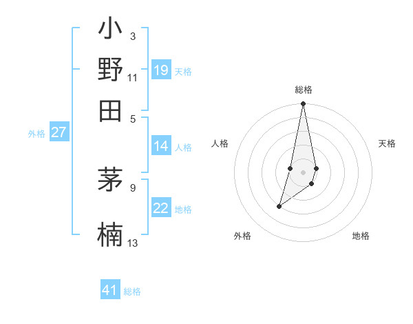小野田 茅楠さんを姓名の画数から五運を鑑定