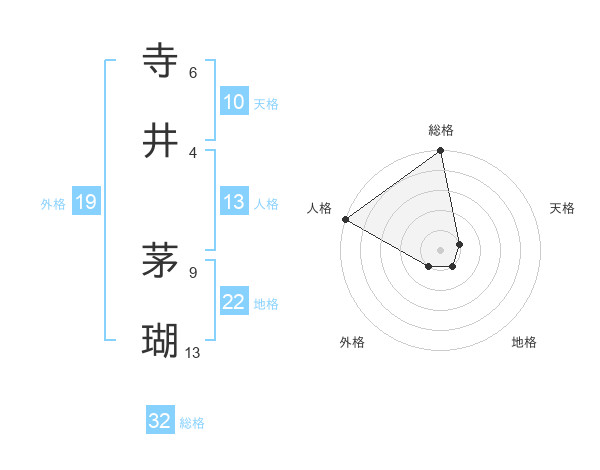 寺井 茅瑚さんの総格は32画の5点!