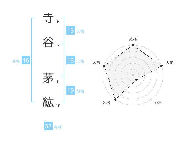 寺谷 茅紘さんの総格は32画の5点!