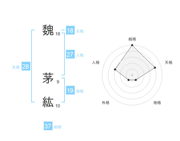 魏 茅紘さんを姓名の画数から五運を鑑定