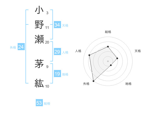 小野瀬 茅紘さんを姓名の画数から五運を鑑定