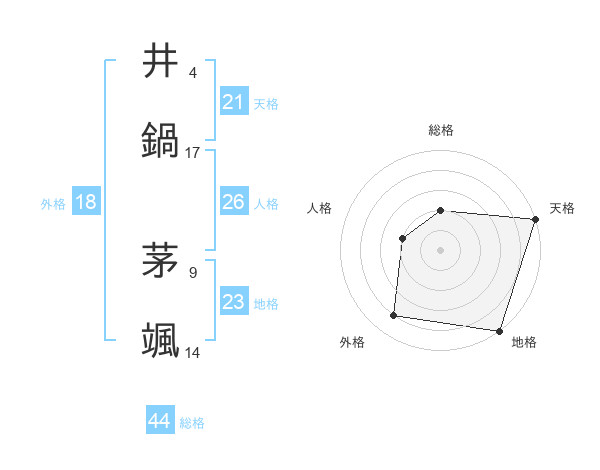 井鍋 茅颯さんの天格は21画の5点!