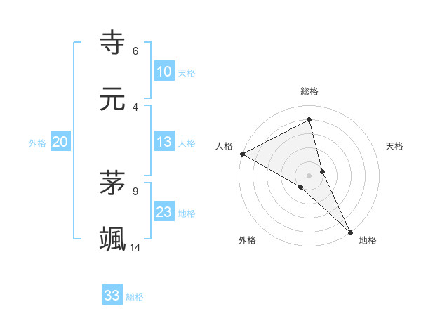 寺元 茅颯さんの総格は33画の4点!