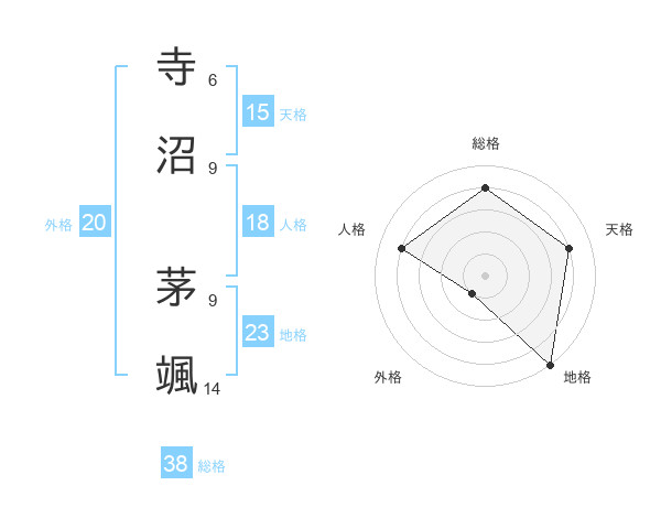 寺沼 茅颯さんの総格は38画の4点!