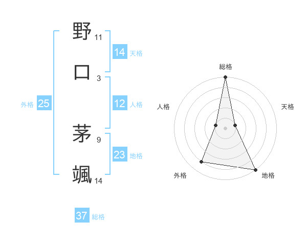 野口 茅颯さんの総格は37画の5点!