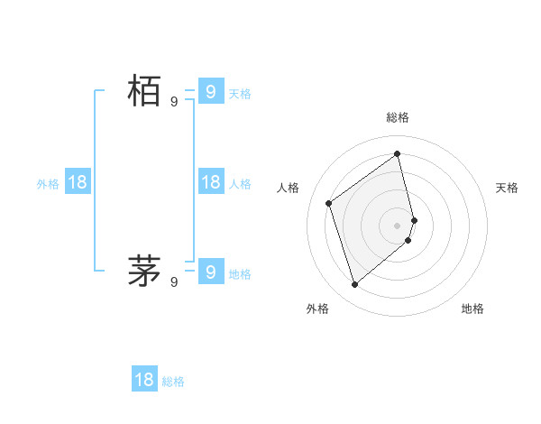 栢 茅さんの総格は18画の4点!