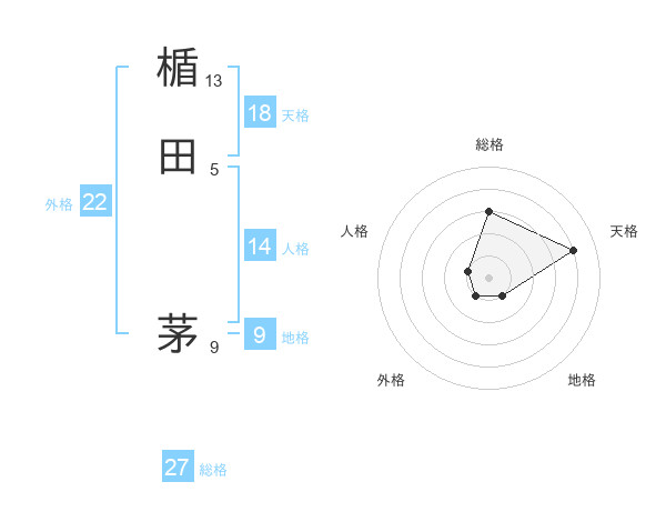 楯田 茅さんの総格は27画の3点!