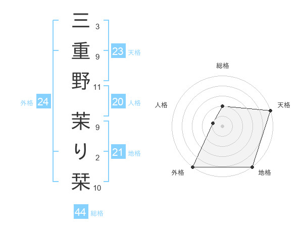 三重野 茉り栞さんを姓名の画数から五運を鑑定