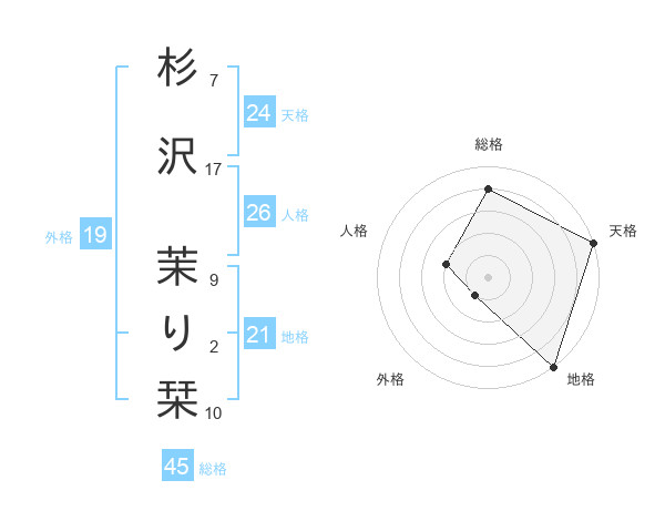 杉沢 茉り栞さんの天格は24画の5点!