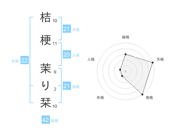 桔梗 茉り栞さんの天格は21画の5点!