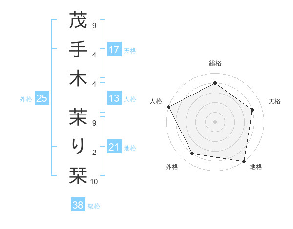 茂手木 茉り栞さんを姓名の画数から五運を鑑定