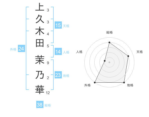 上久木田 茉乃華さんを姓名の画数から五運を鑑定