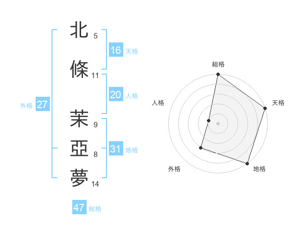 北條 茉亞夢さんを姓名の画数から五運を鑑定