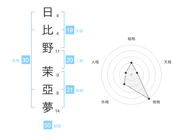 日比野 茉亞夢さんを姓名の画数から五運を鑑定