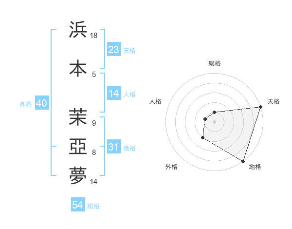 浜本 茉亞夢さんを姓名の画数から五運を鑑定