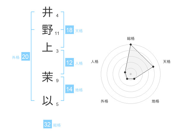 井野上 茉以さんを姓名の画数から五運を鑑定
