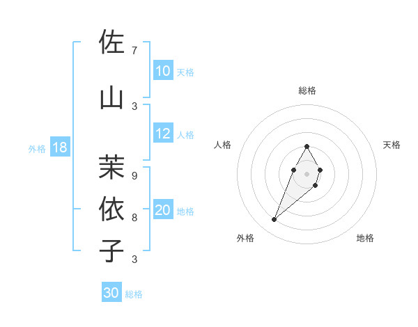 佐山 茉依子さんの総格は30画の2点!