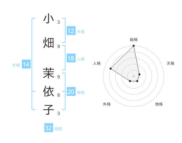 小畑 茉依子さんを姓名の画数から五運を鑑定