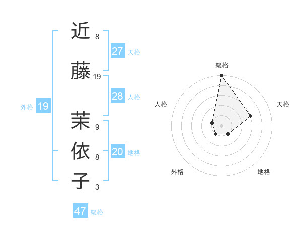 近藤 茉依子さんを姓名の画数から五運を鑑定