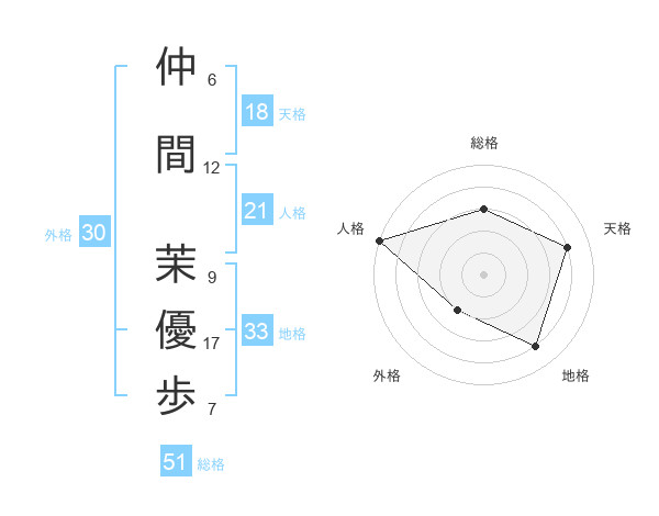 仲間 茉優歩さんを姓名の画数から五運を鑑定