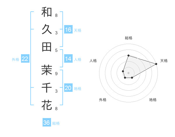 和久田 茉千花さんを姓名の画数から五運を鑑定