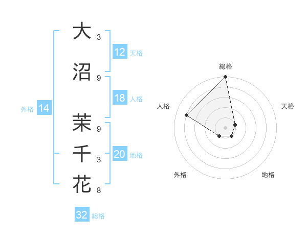 大沼 茉千花さんを姓名の画数から五運を鑑定
