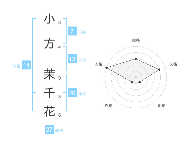 小方 茉千花さんを姓名の画数から五運を鑑定