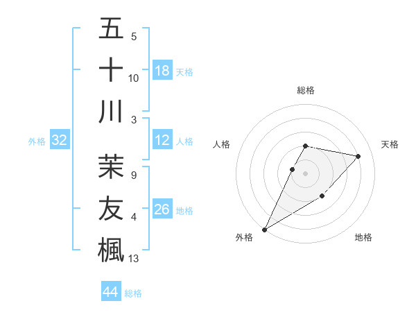 五十川 茉友楓さんの総格は44画の2点!
