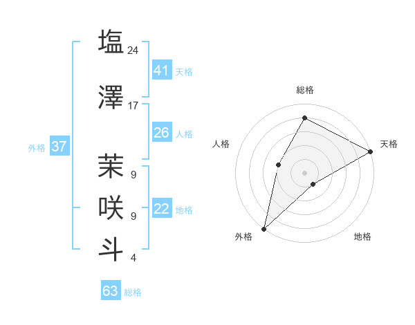 塩澤 茉咲斗さんの外格は37画の5点!