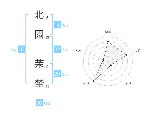 北園 茉埜さんの天格は18画の4点!