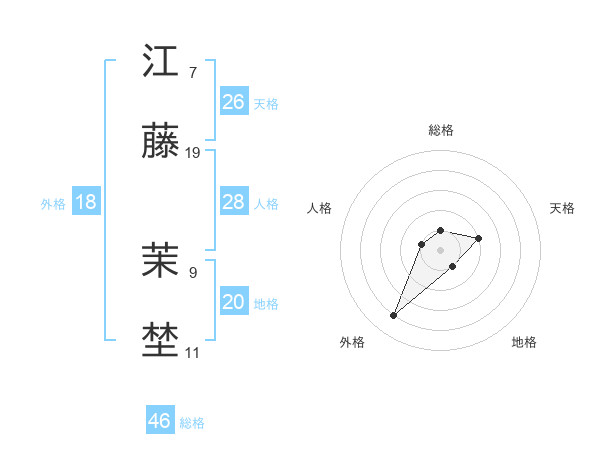 江藤 茉埜さんの総格は46画の1点!