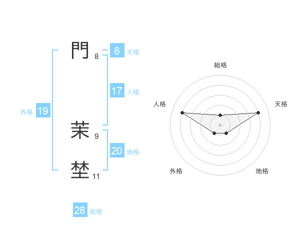家系が持つ宿命的な運勢を表します。祖先から受け継いだ苗字ですので自分の力が及びません。家柄を象徴します。