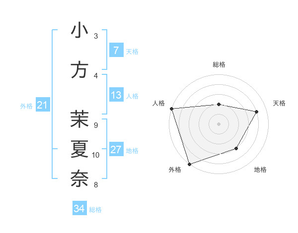 小方 茉夏奈さんを姓名の画数から五運を鑑定