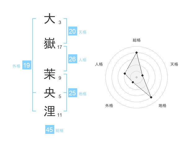 大嶽 茉央浬さんを姓名の画数から五運を鑑定