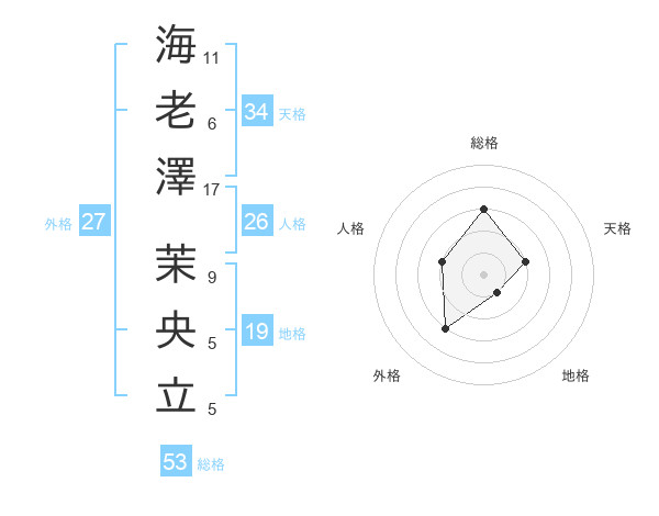 海老澤 茉央立さんを姓名の画数から五運を鑑定