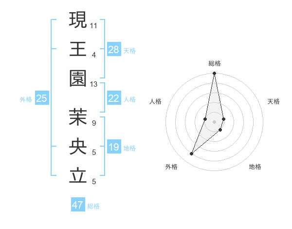 現王園 茉央立さんを姓名の画数から五運を鑑定