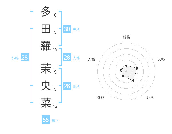 多田羅 茉央菜さんを姓名の画数から五運を鑑定