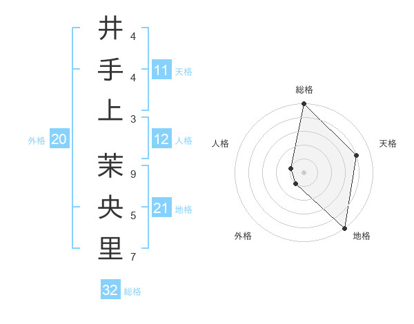 井手上 茉央里さんを姓名の画数から五運を鑑定