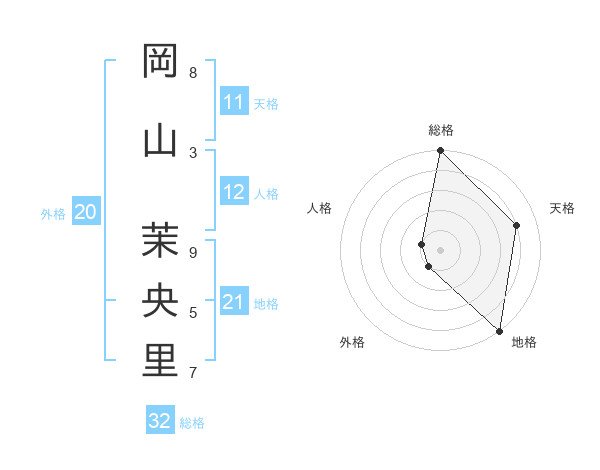 岡山 茉央里さんの総格は32画の5点!