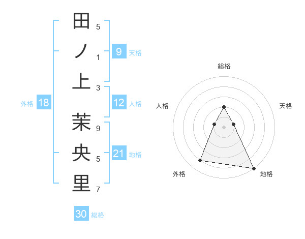 田ノ上 茉央里さんを姓名の画数から五運を鑑定