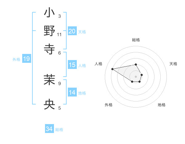 小野寺 茉央さんの天格は20画の1点!