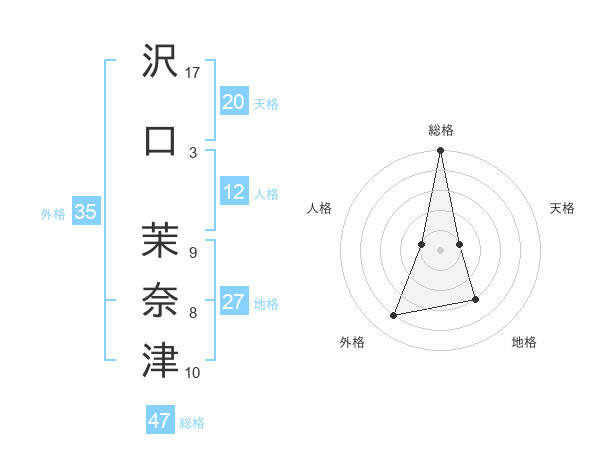 沢口 茉奈津さんの総格は47画の5点!