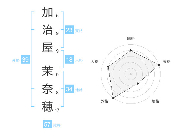 加治屋 茉奈穂さんを姓名の画数から五運を鑑定