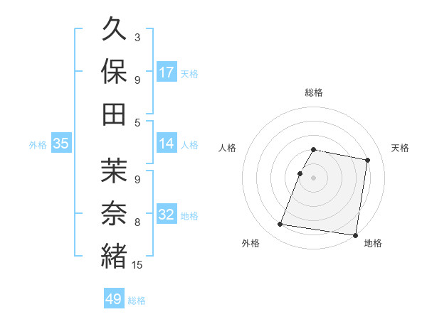 久保田 茉奈緒さんを姓名の画数から五運を鑑定