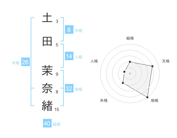 土田 茉奈緒さんの総格は40画の2点