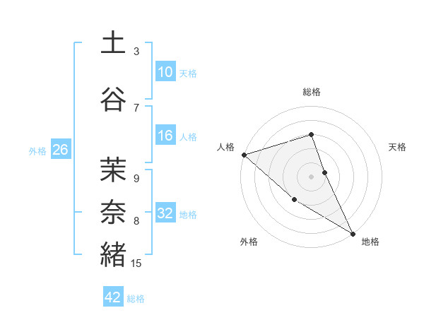 土谷 茉奈緒さんの総格は42画の3点!