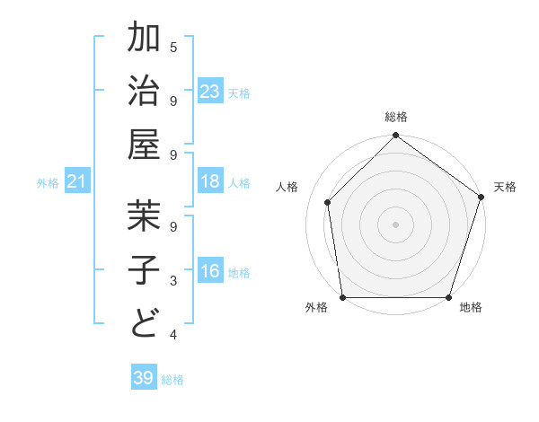 加治屋 茉子どさんを姓名の画数から五運を鑑定