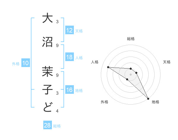 大沼 茉子どさんを姓名の画数から五運を鑑定