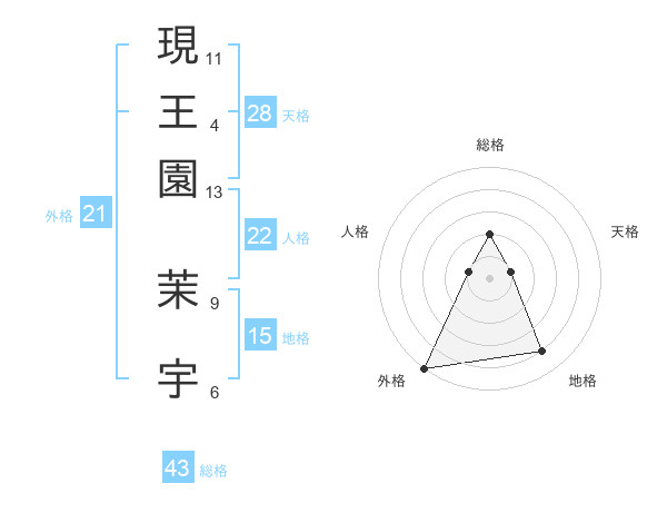 現王園 茉宇さんを姓名の画数から五運を鑑定